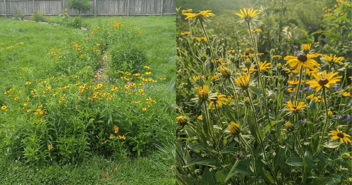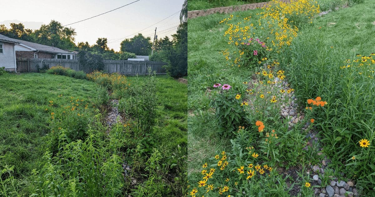 Not only did our basement stop getting leaks from an outdated French drain, but our backyard looked so much better! I already thought native plants were beautiful but seeing them every day and the pollinators they attracted definitively raised my opinion of them even more.
