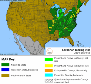 Savanna Blazing Star (Liatris scariosa var. nieuwlandii), also known as Northern Blazing Star, Eastern Blazing Star, or Nieuwland’s Blazing Star, is a resilient native perennial with bold spikes of orchid-purple flowers that bloom from late summer into early fall.