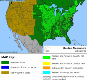 Golden Alexanders pairs well with companions like Blue False Indigo, Red Columbine, and Fox Sedge, offering vibrant contrast and supporting healthy native plant communities. It’s an ideal choice for pollinator gardens, wet meadows, and prairie restorations looking for early-season color and ecological value.